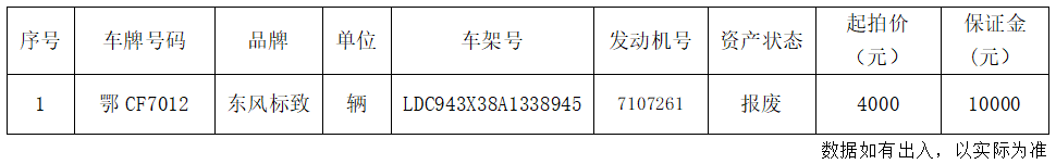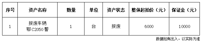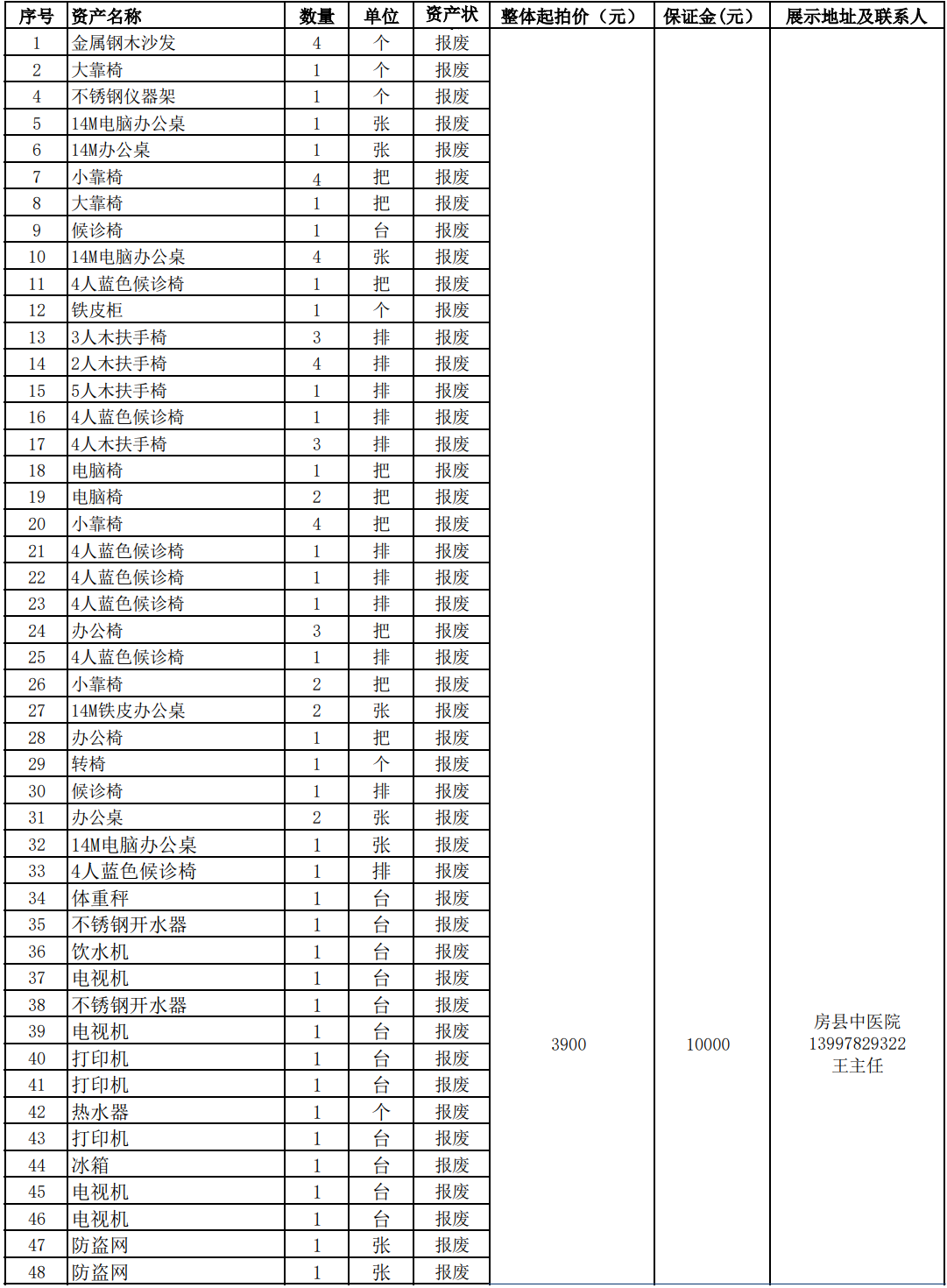]]>一、拍賣標的:湖北省十堰市房縣中醫(yī)院報廢資產(chǎn):