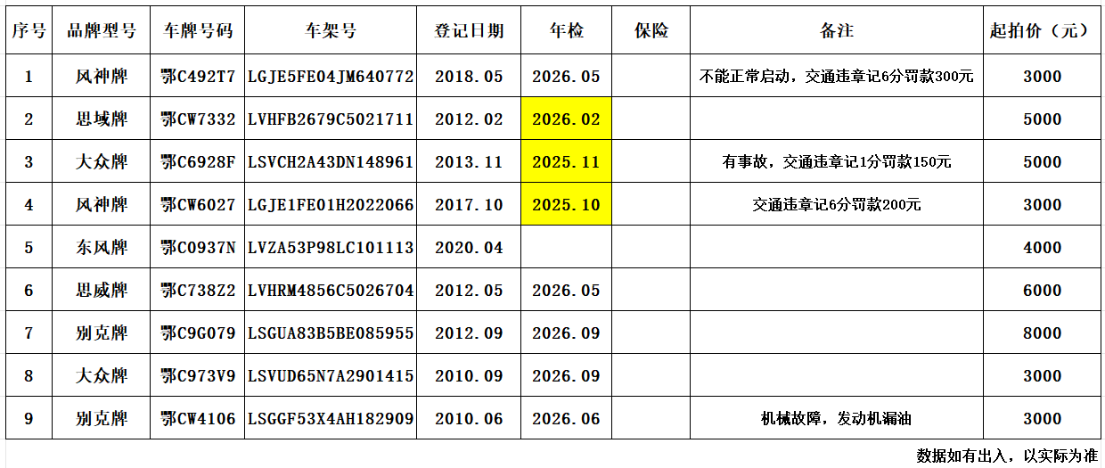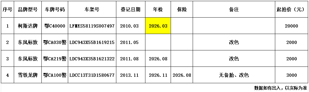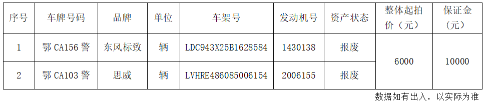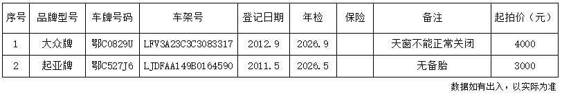 四、特別提醒:拍賣車輛不含車牌號碼,以現(xiàn)狀拍賣現(xiàn)狀交付。